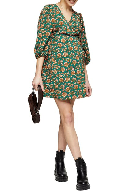Topshop Willmor Floral Print Maternity Wrap Dress In Green Multi Modesens