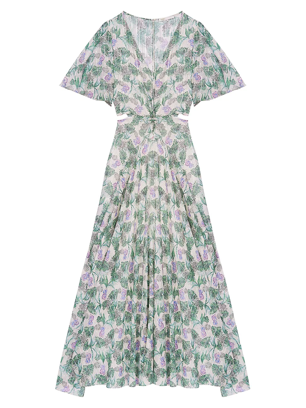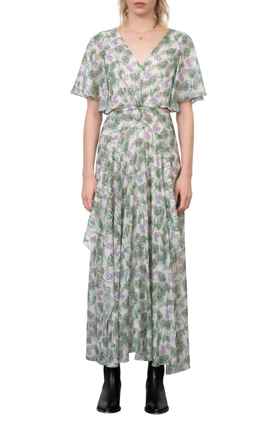 Maje Rochelle Printed Muslin Scarf Dress In Green Modesens