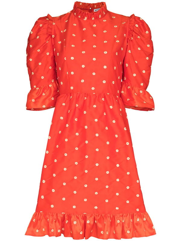 1980s Floral Lace Prairie Mutton Sleeve Dress Feng Sway